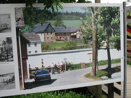 近40年来,村民们被这座围墙隔成两边。这座村庄奇怪在,它的一边位于德国旧的巴伐利亚王国,另一边则分布在东部的图林根州,这是当时德国分裂时期的怪异现象之一。而且这座村庄拥有两个截然不同的邮政编码、电话区号和学校系统,包括村民间打招呼的方式也很不同,村里原东德村民见面以“Guten Tag(你好)”作为问候语,而巴伐利亚州的村民们见面则用一种带有罗马天主教口吻的“Gruess Gott(问候上帝)”的打招呼方式。