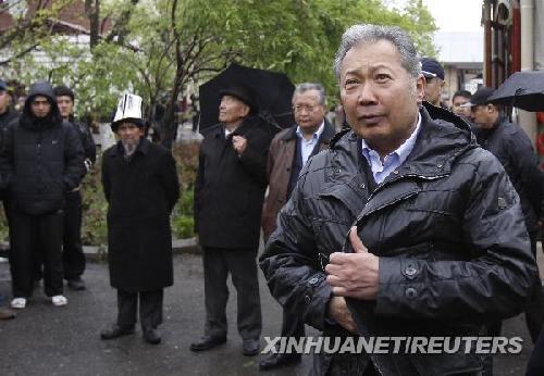4月12日,吉尔吉斯斯坦总统巴基耶夫在吉南部的贾拉拉巴德州向媒体发表讲话。当天,巴基耶夫在吉南部的捷伊特村举行的集会上发出警告称,如果反对派组建的“临时政府”企图逮捕他将导致流血冲突。 新华社/路透
