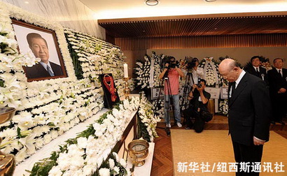 8月19日,韩国前总统全斗焕在首尔市塞弗伦斯医院的灵堂悼念前总统金大中。金大中于18日在首尔市中心的塞弗伦斯医院去世,享年85岁。新华社/纽西斯通讯社
