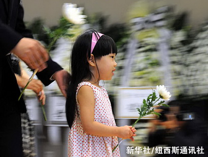 8月18日,一名小女孩在韩国首尔市塞弗伦斯医院的灵堂献花,悼念韩国前总统金大中。新华社/纽西斯通讯社