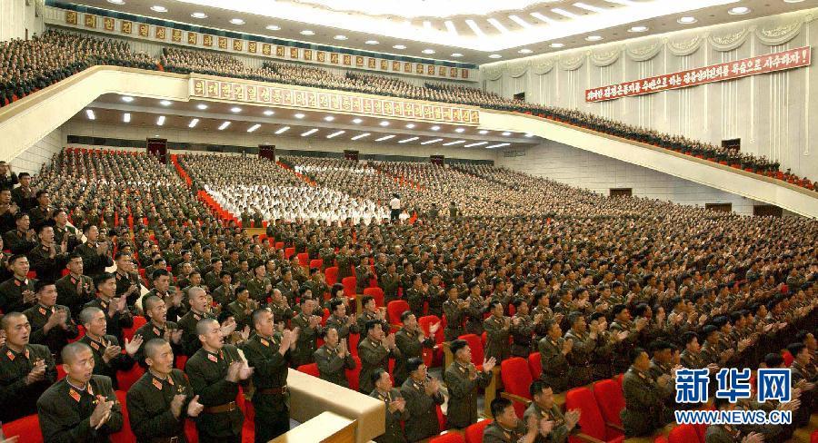这张朝中社7月18日提供的照片显示,朝鲜人民军官兵参加在朝鲜首都平壤的“4·25文化会馆”举行的决议大会,热烈庆祝朝鲜人民军最高司令官金正恩当日被授予朝鲜民主主义人民共和国元帅称号。据朝中社18日消息,朝鲜人民军最高司令官金正恩被授予朝鲜民主主义人民共和国元帅称号。 新华社/朝中社